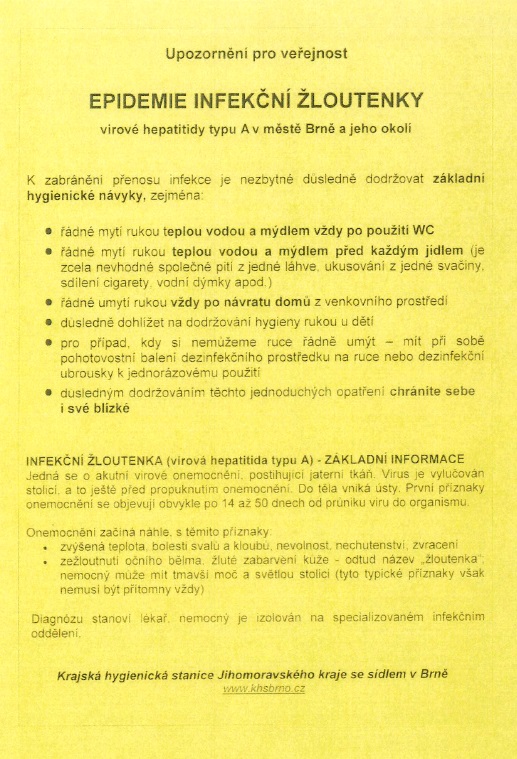 Úvod > O obci > Hlášení, aktuality > Krajská hygienická stanice k epidemii žloutenky