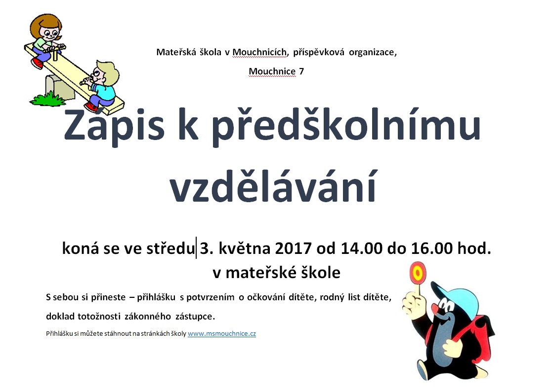 Přihlášku si můžete stáhnout na stránkách školy www.msmouchnice.cz
